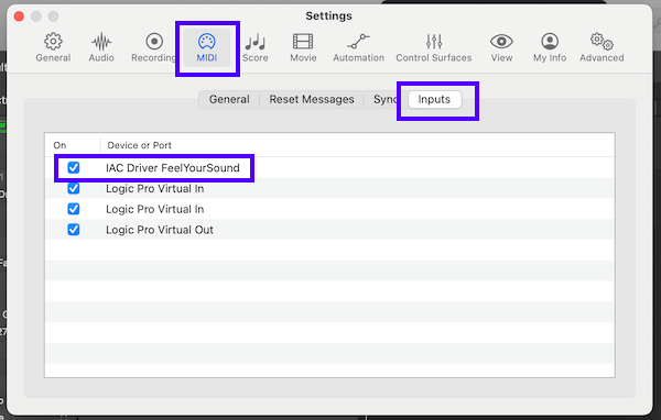Now click on the "MIDI" tab to open the MIDI settings. Activate the virtual MIDI cable in the "MIDI Input" settings.